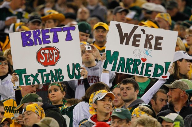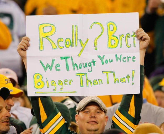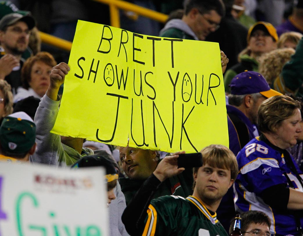Last night was a pretty wild night with the Minnesota Vikings in town to play the Packers. The crowd was a good mix of both Vikings and Packers fans and as you can imagine there were a lot of fans both cheering and booing Brett. In the end the Packers came out ahead, but not without Mr. Favre trying to win the game for his team in the last couple of minutes. Here are my favorite photos along with some of my favorite signs the crowd had. Thanks for looking.