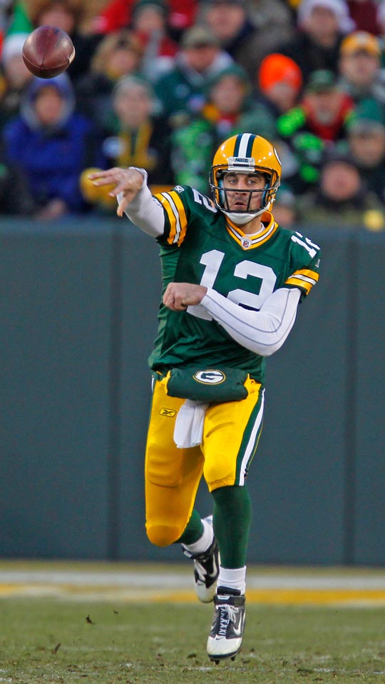 Green Bay Packers quarterback Aaron Rodgers passes the ball against the New York Giants.