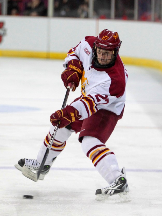 Ferris State’s Andy Huff takes a shot against Cornell during the third period.