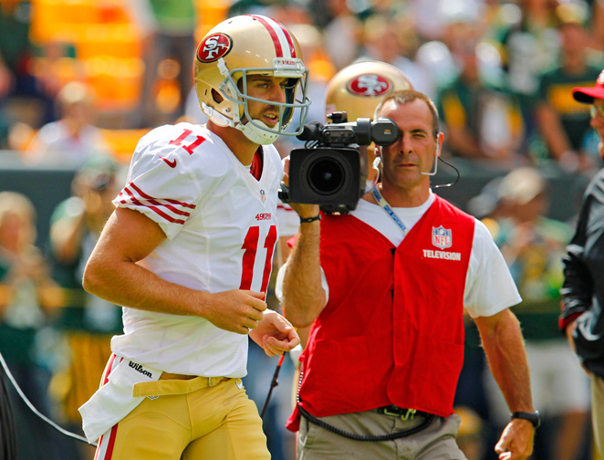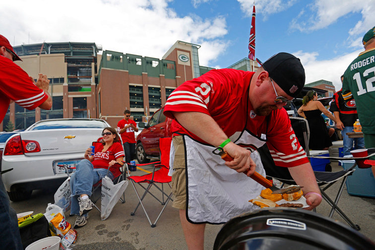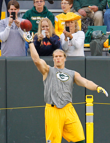 Green Bay Packer fans take photos of Green Bay Packers outside linebacker Clay Matthews during warm ups.