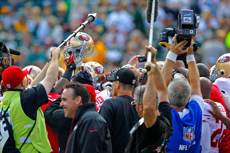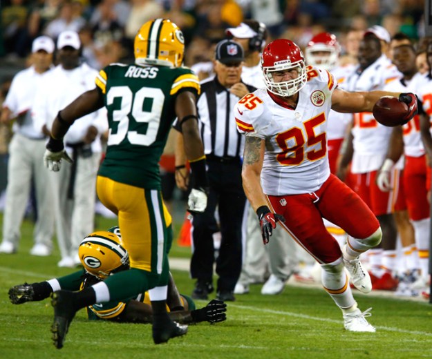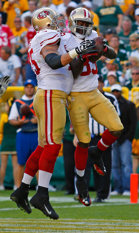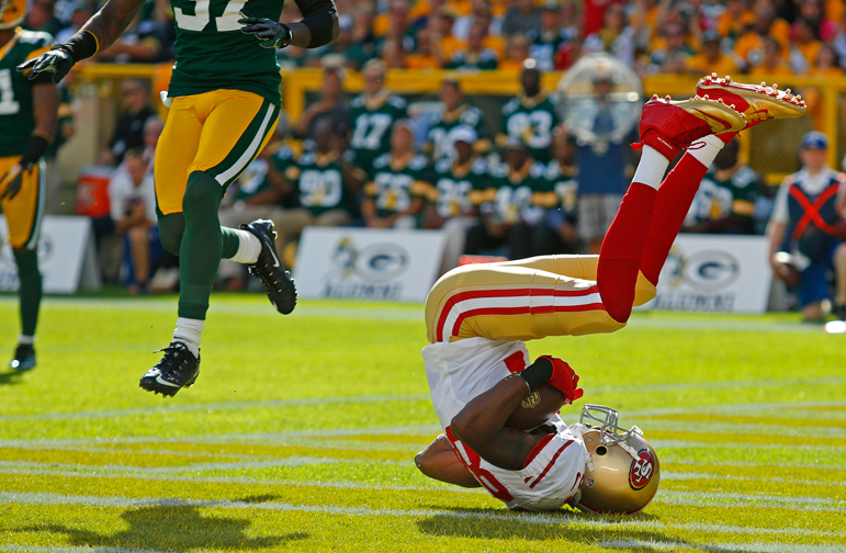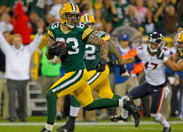 Green Bay Packers tight end Tom Crabtree runs a fake field goal in for a touchdown against the Chicago Bears.