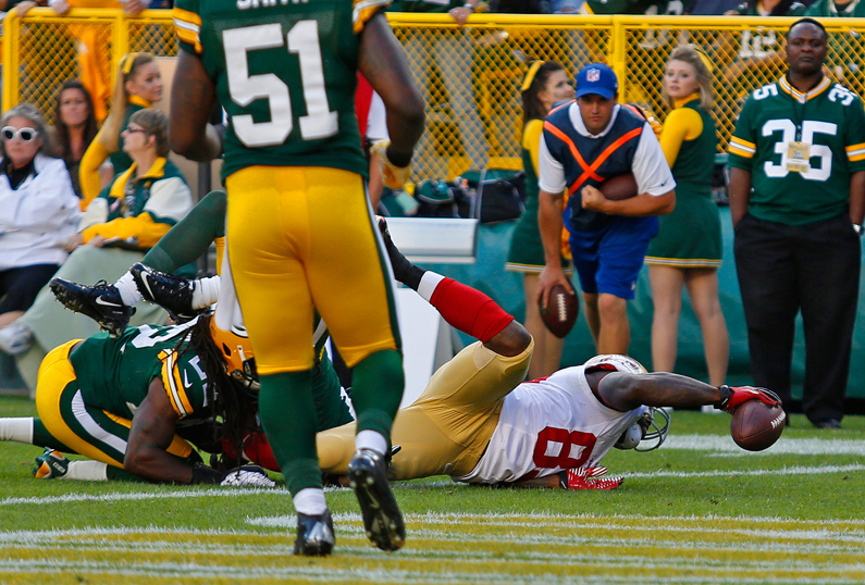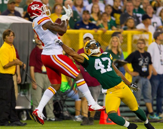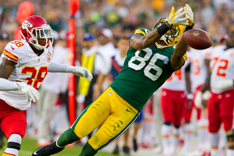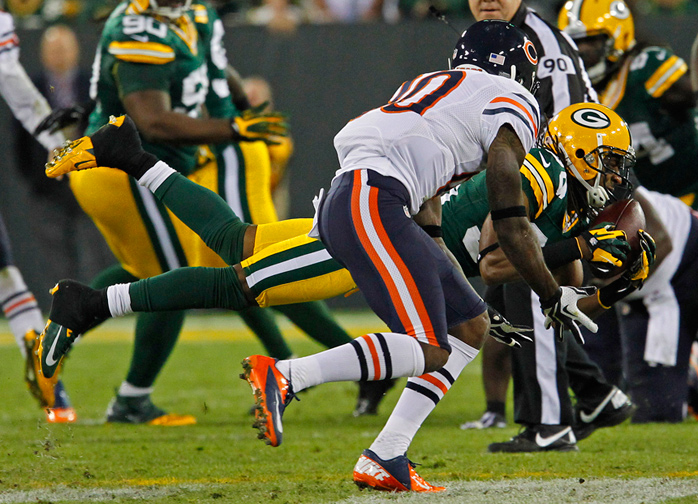 Green Bay Packers wide receiver Jordy Nelson attempts to make a catch against the Chicago Bears.
