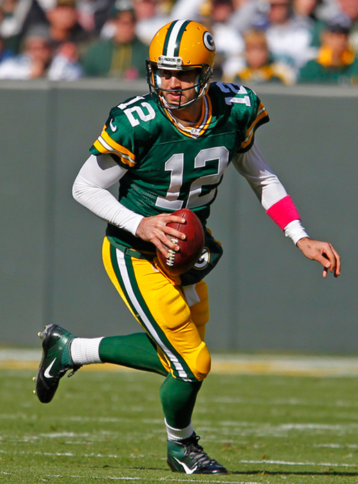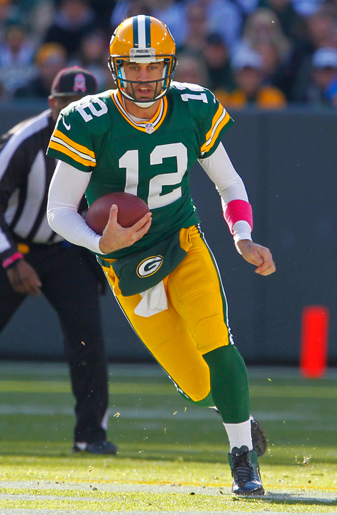 Green Bay Packers quarterback Aaron Rodgers scrambles during a play against the Jacksonville Jaguars.