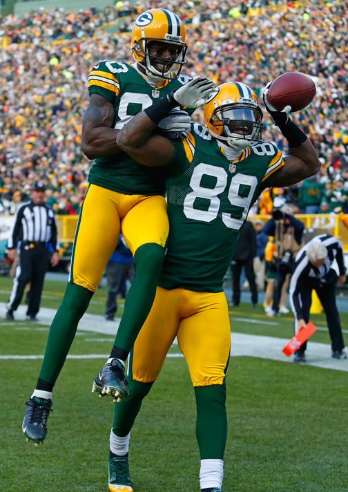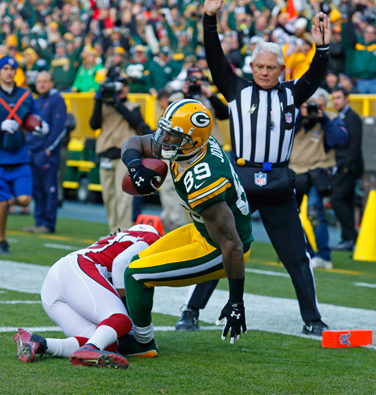Green Bay Packers wide receiver James Jones (89) celebrates scoring a touchdown again the Arizona Cardinals with wide receiver Donald Driver (80).
