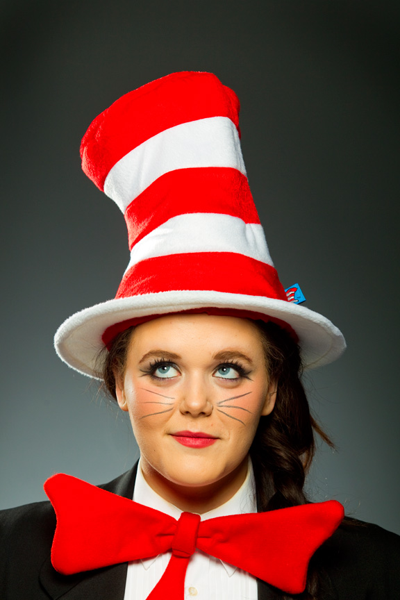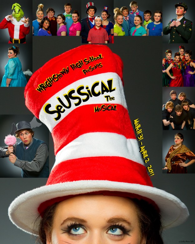 This past weekend Wrightstown High School put on their performance of Seussical the Musical.  For those of you not familiar with the show, it is based on many of the famous Dr. Seuss books for children.  The show mainly follows the story  of Horton Hears a Who but also incorporates many other story lines from the other Seuss books.  My wife, who happens to be the co-director of the show, and I thought it would be cool to shoot portraits of the actors considering the show has a very colorful set along with colorful costumes.  We would eventually combine these images to make a poster for the show which the actors could have as a keepsake.  I wanted to shoot everything on a neutral background so the colors in the actor’s costumes would pop out.  The set up was fairly simple considering we had to shoot 11 different shots in about 20 minutes before one of the last dress rehearsals.  The background was lit with a single strobe on a floor stand with a 20 degree grid.  The actors were then lit with a beauty dish on a boom stand and a strip box behind them to camera left to create separation.   Here are some of the images we came up with along with the poster we made.  Thanks for looking.
